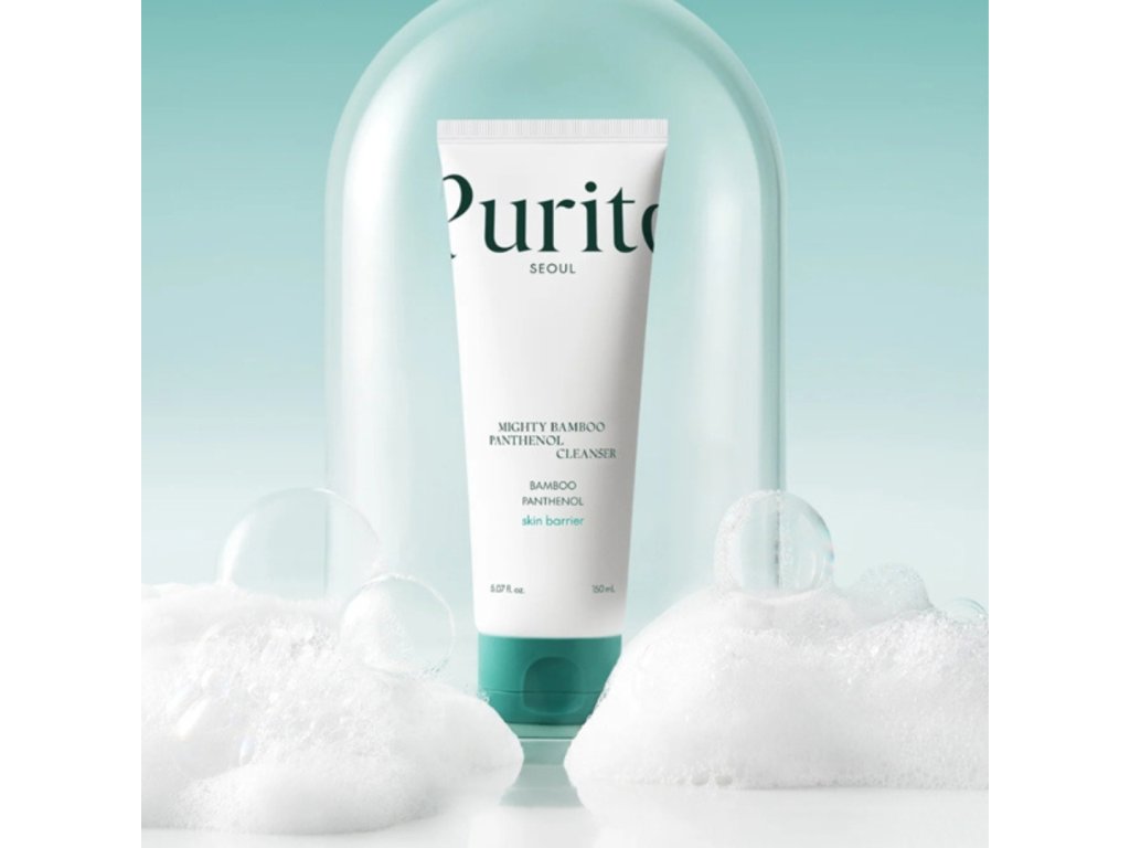 PURITO SEOUL Mighty Bamboo Panthenol Cleanser Soothing cleansing foam with bamboo and panthenol cleanses, refreshes and balances your stressed skin. The lightweight formula with soothing bamboo extract, panthenol and allantoin effectively rids your skin of impurities as well as UV-filtering creams while keeping it well-hydrated and irritation-free.