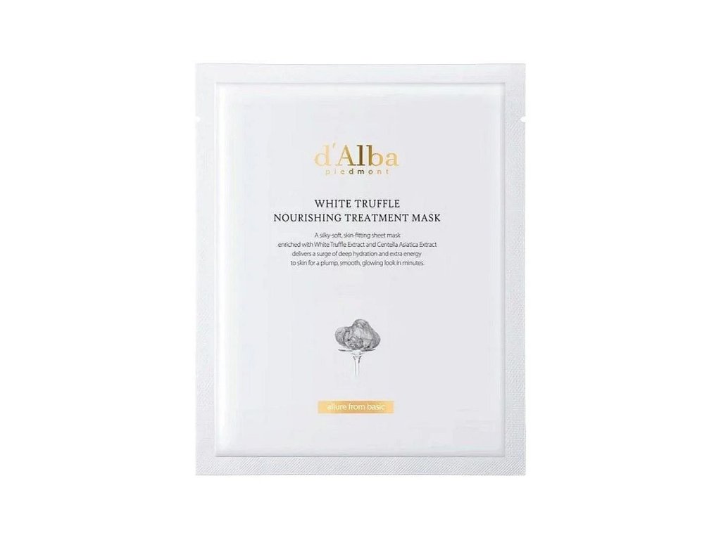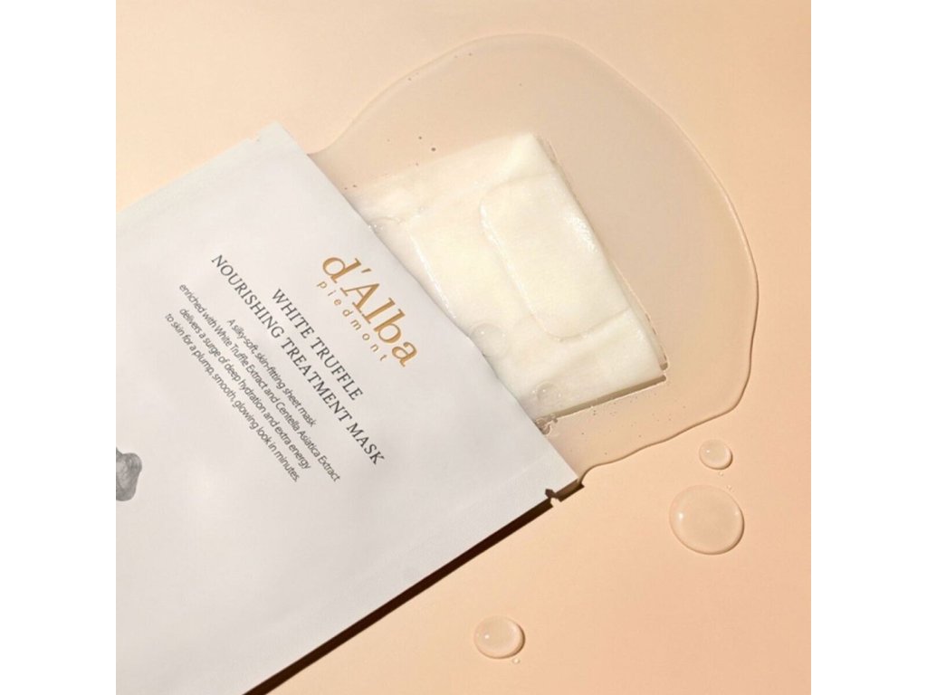 d'Alba White Truffle Nourishing Treatment Mask Nourishing Truffle Cloth Mask provides long-lasting moisture, hydration and smoothness to the skin. Containing premium Italian white truffle and 5 types of hyaluronic acid, it penetrates moisture into the deep layers of the skin, leaving it hydrated and wrinkle-free.
