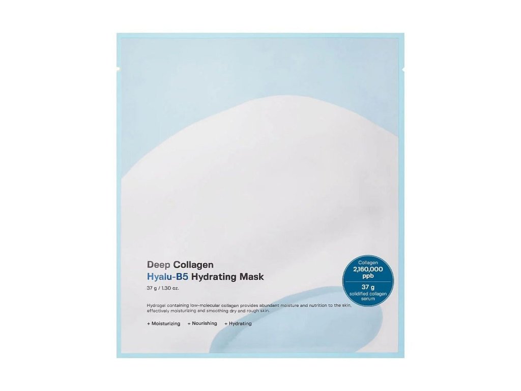 Sungboon Editor Deep Collagen Hyalu-B5 Hydrating Mask Hydrating mask with collagen and panthenol intensively hydrates and rejuvenates dry and sagging skin without brightness and moisture. Containing 83% low molecular weight collagen, this hydrogel mask effectively reduces eye wrinkles and smile lines, improving elasticity while minimizing the appearance of pores.