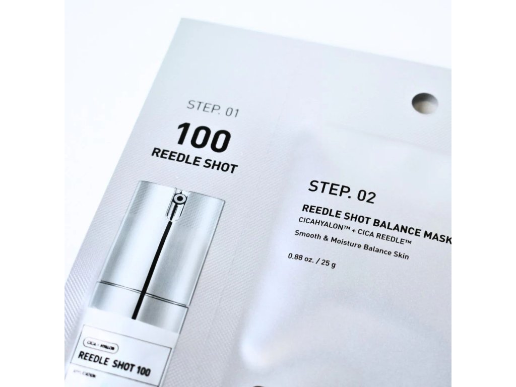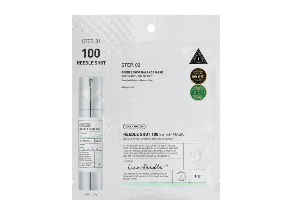 Get closer to a true "shot" of hydration - VT Cosmetics Reedle Shot 100 2Step Mask is a two-step treatment that combines nourishing propolis and the power of niacinamide to instantly improve skin texture. The non-greasy consistency is easily absorbed and leaves skin fresh, unified and radiant.