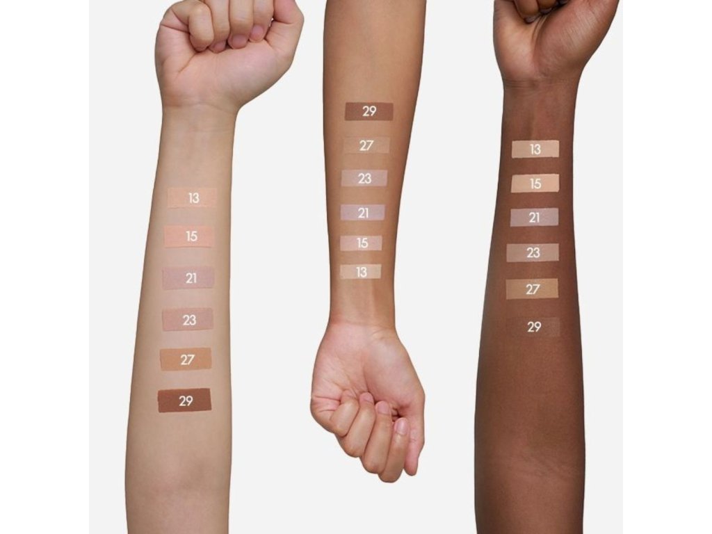 | Composition: | Water, cyclopentasiloxane, titanium dioxide, caprylic/capric triglyceride, zinc oxide, butylene glycol, laurylpolyglyceryl-3-polydimethylsiloxyethyldimethicone, cyclohexasiloxane, diisostearyl malate, hydrogenated poly (C6-14 olefin), niacinamide (14 sorbitan, 50ella sesenium chloride) ppm), sodium chloride, panthenol, 1,2-hexanediol, triethoxycaprylsilane, dextrin palmitate, aluminium hydroxide, disteardimonium hectorite, stearic acid, caprylyl glycol, tocopherol, polyglyceryl-4-isostearate, coconut caprylate/caprate, 3-polyricdenosinosinilate Dimethicone/Vinyl Dimethicone Crosspolymer, sorbitan isostearate, ethylhexylglycerin, allantoin, mica, iron oxides (CI 77492), iron oxides (CI 77491), iron oxides (CI 77499). |