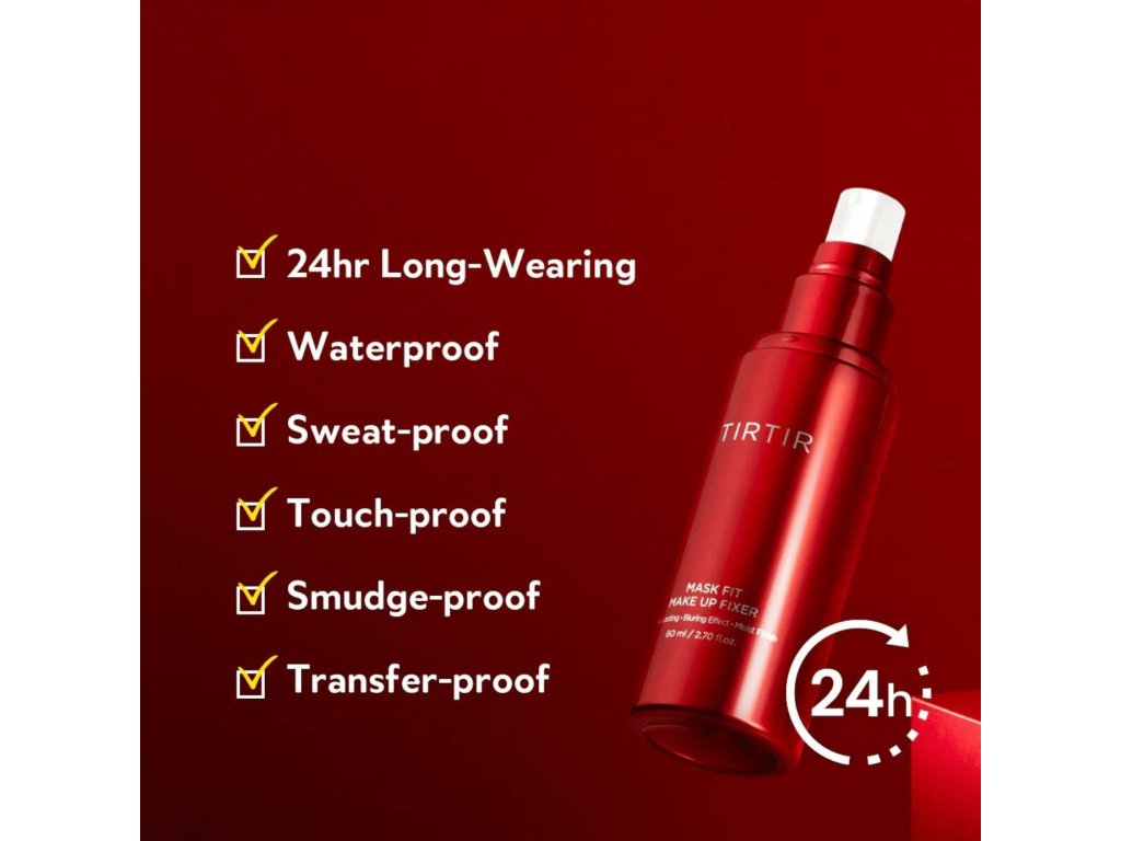 Imagine your makeup staying fresh, clean and flawless all day long - that's what **TIRTIR Mask Fit Make-Up Fixer**, a gentle fixing spray with Centella Asiatica extract, keeps your skin hydrated, soothed and flawless.
