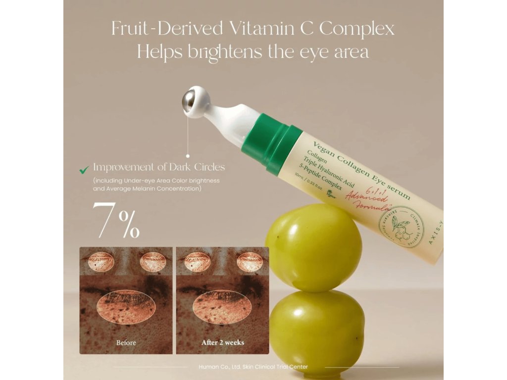 ⭐️Pro tip: Apply AXIS-Y Vegan Collagen Eye Serum after toner or essence and before cream; always finish with SPF in the morning and lock in hydration with cream in the evening.