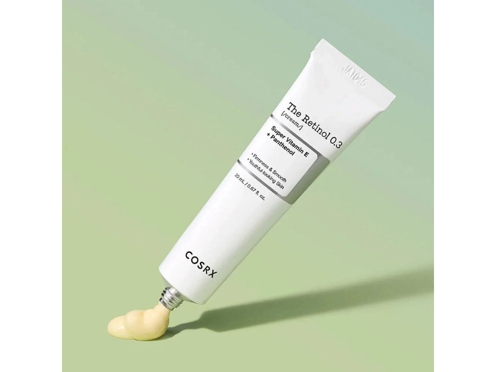 COSRX The Retinol 0.3 Cream Rejuvenating cream with 0.3% retinol will help you reduce deeper wrinkles, lost elasticity, uneven skin texture and tone in just 4 weeks. The cream is ideal for more mature skin types, as well as those of you who want to prevent wrinkles and signs of aging. At the same time, it will effectively target enlarged pores or acne problems. The rich, creamy texture softens and firms the skin, visibly reducing signs of maturity or damage with an overall lifting effect. Panthenol, allantoin and hyaluronic acid also soothe and moisturise sensitive or irritated skin. MAIN COMPONENTS- 0.3% retinol helps to effectively reduce fine lines and wrinkles and improves the overall texture and elasticity of the skin
