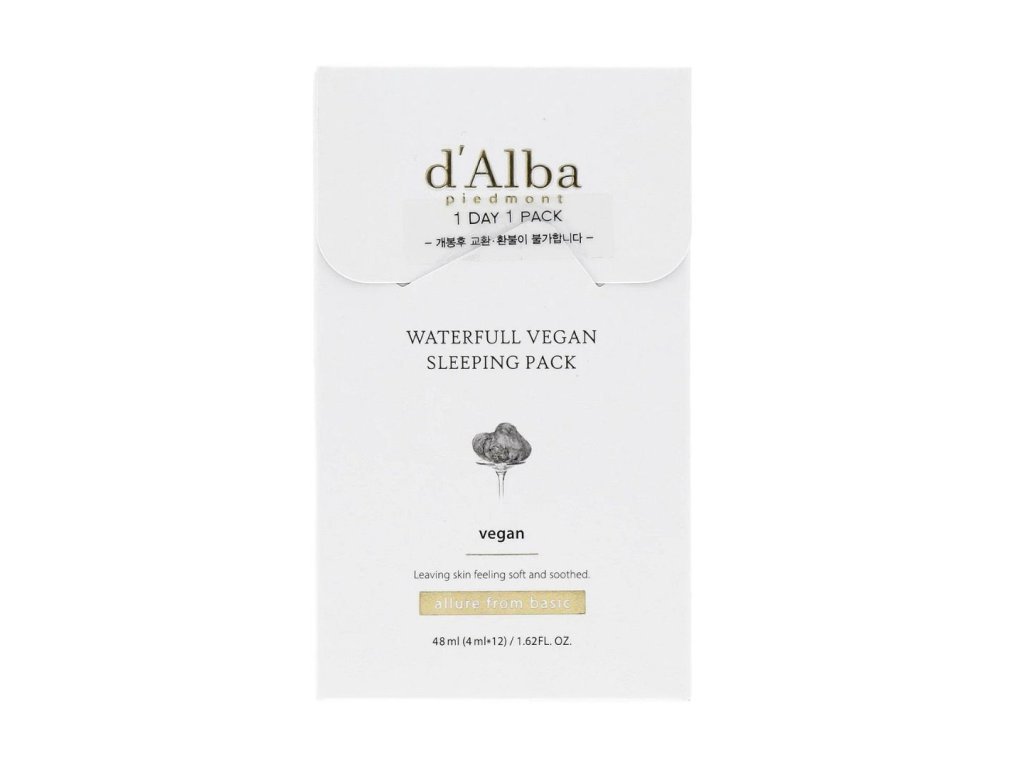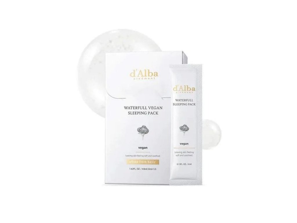 The d'Alba Waterfull Vegan Sleeping Pack is a vegan night mask designed to intensely hydrate and regenerate the skin while you sleep. It contains Italian white truffle extract, which is rich in amino acids and minerals, helping to increase skin elasticity.The mask is packaged in disposable 4ml sachets, allowing for a hygienic and convenient application, ideal for on-the-go. This mask provides the skin with the necessary hydration, nourishment and regeneration during the night, leading to a fresh and radiant appearance in the morning.