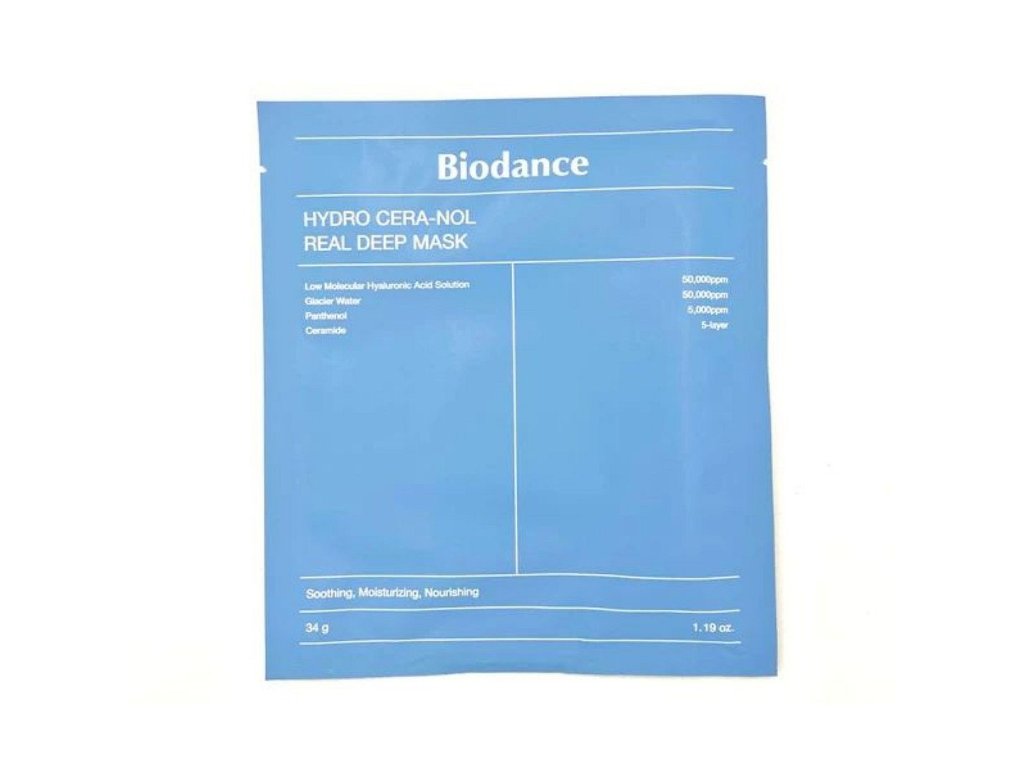 Hydro Cera-nol Real Deep Mask by BIODANCE is a ceramide-hyaluronate booster for dry or damaged skin. The mask combines ceramides with multiple forms of hyaluronic acid and niacinamide, which work together to restore the protective barrier and deliver deep hydration. Apply quickly after cleansing and leave on for 10-15 minutes for an instant boost of nourishment.