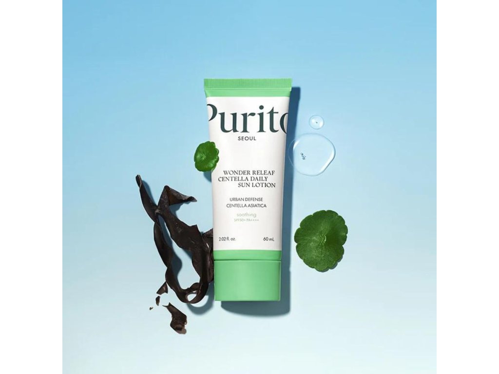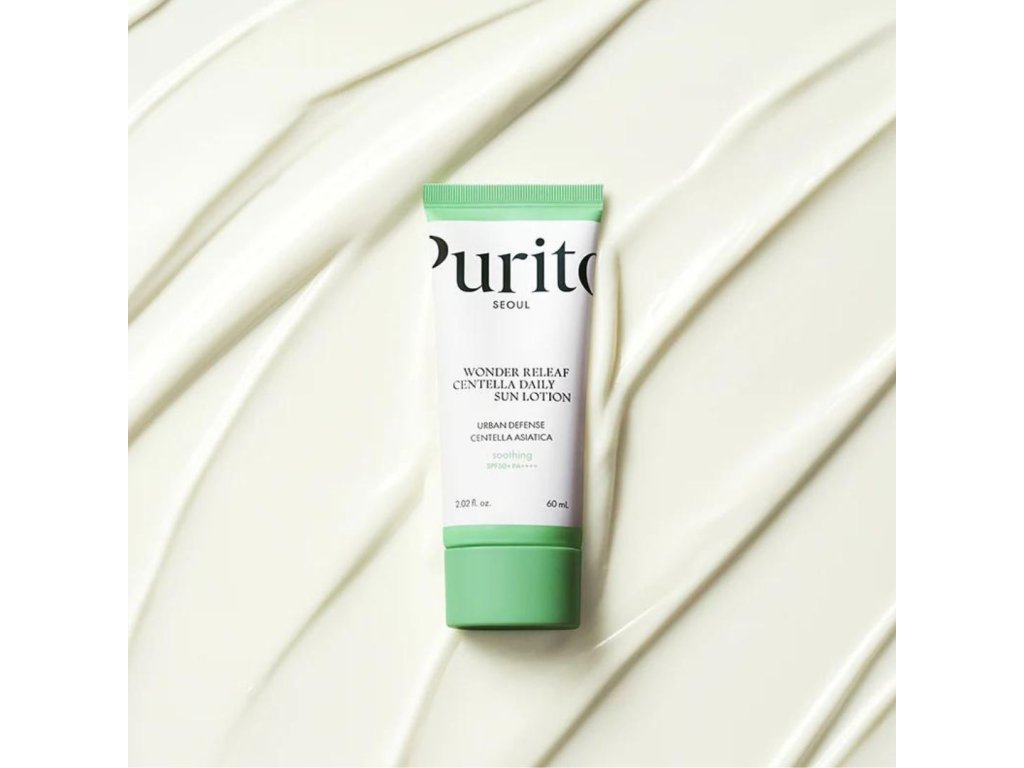 PURITO SEOUL Wonder Releaf Centella Daily Sun Lotion is an exceptional sunscreen with SPF50+ PA++++ provides powerful protection from harmful UV rays, while Centella Asiatica extract soothes and regenerates the skin. With a lightweight, fast-absorbing formula, it's ideal for daily use, leaving your skin hydrated and protected. Why you'll love it: This daily sunscreen is more than just sun protection - it's comprehensive skin care. High in Centella Asiatica and Niacinamide, it not only protects skin from harmful UV rays, but also soothes, regenerates and hydrates. Its light, non-greasy texture is ideal for all skin types, even the most sensitive. Thanks to it, your skin will be soft, smooth and perfectly protected every day, without an unpleasant white film. PURITO SEOUL Wonder Releaf Centella Daily Sun Lotion is a great addition to your daily routine, which you will love for its multifunctional effects and pleasant feeling on the skin. Main ingredients:- Centella Asiatica Extract: Soothes irritated skin, promotes regeneration and improves elasticity.