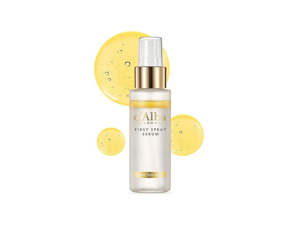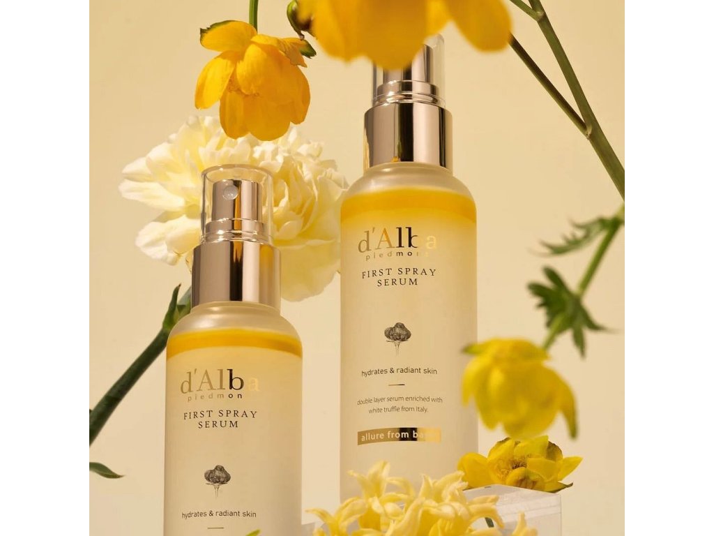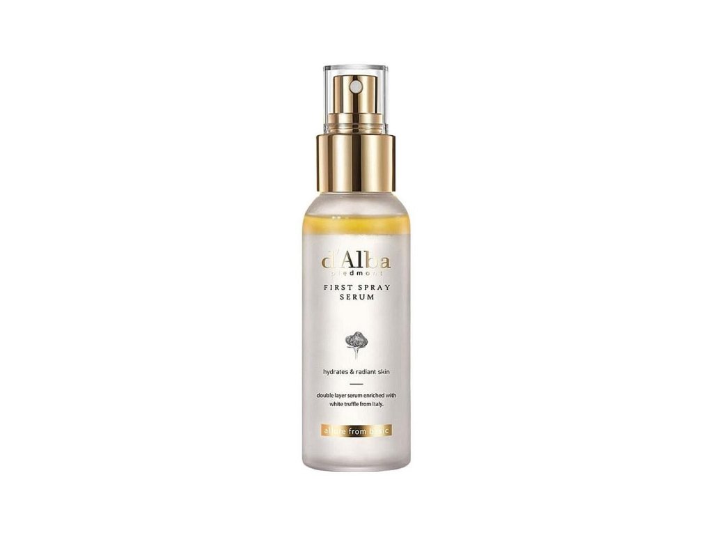 d'Alba White Truffle First Spray Serum A brightening and hydrating spray serum to give your skin deep hydration and a healthy glow at any time of the day. Containing premium Italian white truffle, avocado oil and lotus extract, it helps skin gain long-lasting moisture, nourishment, firming, elasticity and brightness.