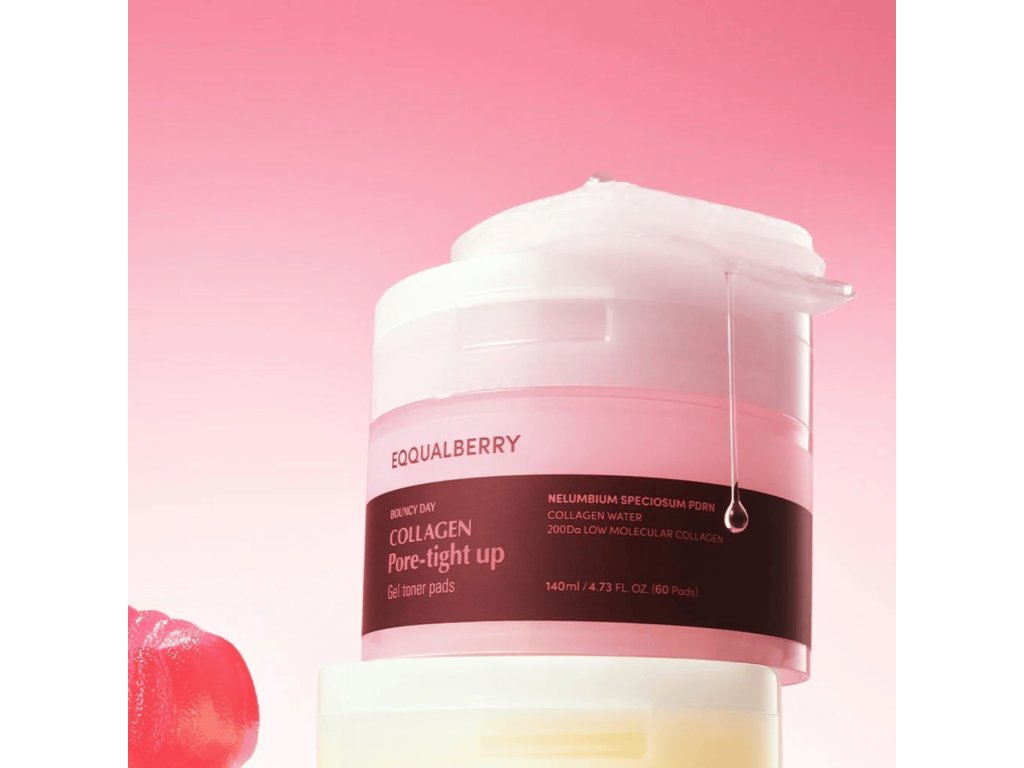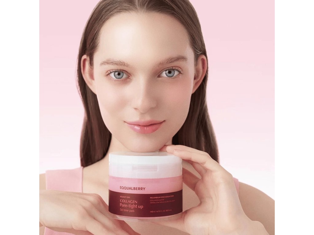 EQQUALBERRY Collagen Pore-Tight Up Gel Toner Pads are an innovative addition to your routine. They contain hydrolysed collagen, Niacinamide and Centella Asiatica - anti-ageing and anti-obstacle ingredients that will help you refine pores, lighten skin tone and restore elasticity. Gentle pads saturated with gel essence are ready to revitalize your skin after makeup removal.